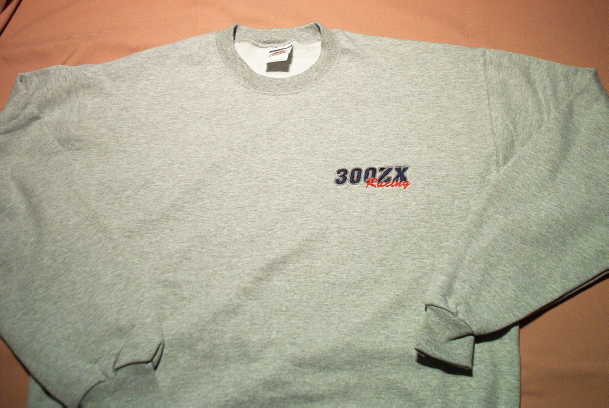 | 300ZX Racing embroidered sweatshirt. Our NEW 300ZX Racing embroidered sweatshirt is just the thing to take the chill off of those cool nights...and it looks cool too! You'll love this Jerzees High Cotton 9.3 ounce crew neck sweatshirt. Made of 90% cotton and 10% polyester it has cover-seamed neck, shoulders, armholes and waistband. Set-in sleeves, ribbed collar, cuffs and waistband with Glospan spandex make this a shirt that will last for years. And of course EMBROIDERED with our 6,000 stitch "300ZX Racing" logo on the left chest in red, blue and gray thread. This is our own design and is NOT available anywhere else. $ 28.95ea. plus $ 3.95 shipping. Specify L or XL. Click on the picture to email us your order. Item # 9000 (order this item along with any cap and we will pay shipping to any state in the US) LIMITED SIZES CURRENTLY AVAILABLE, Please email us with your sizes before ordering. |