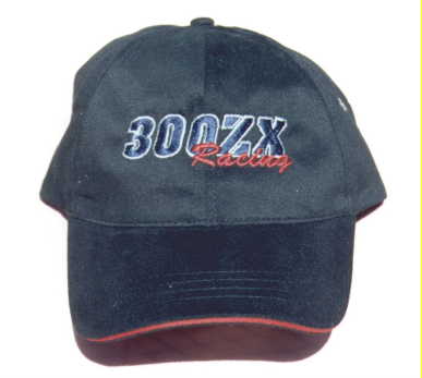 | 300ZX Racing Sandwich Cap Of all our caps this is our favorite. Because of its low profile constructed 6 panel light weight brushed cotton design and its contrasting sandwich bill with side metal eyelets it is already an instant hit. Of course it has the same gorgeous 300ZX Racing embroidered logo that all our apparel has (I must admit this picture doesn't do it justice). One size fits most. Available in black with the red contrasting sandwich bill only, $ 19.95 plus $ 3.95 shipping. Click on the picture to email us your order. Item 6004 |